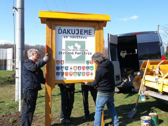 Do jednotlivých obcí regiónu sme osadili 22 veľkoplošných informačných tabúľ s údajmi o obci a turistickými informáciami s dôrazom na zobrazenie kultúrnych, prírodných a historických pamiatok a významných rodákov. Na všetkých hlavných komunikáciách sme osadili 14 malých tabúľ vymedzujúcich hranice regiónu MAS Stredné Ponitrie.